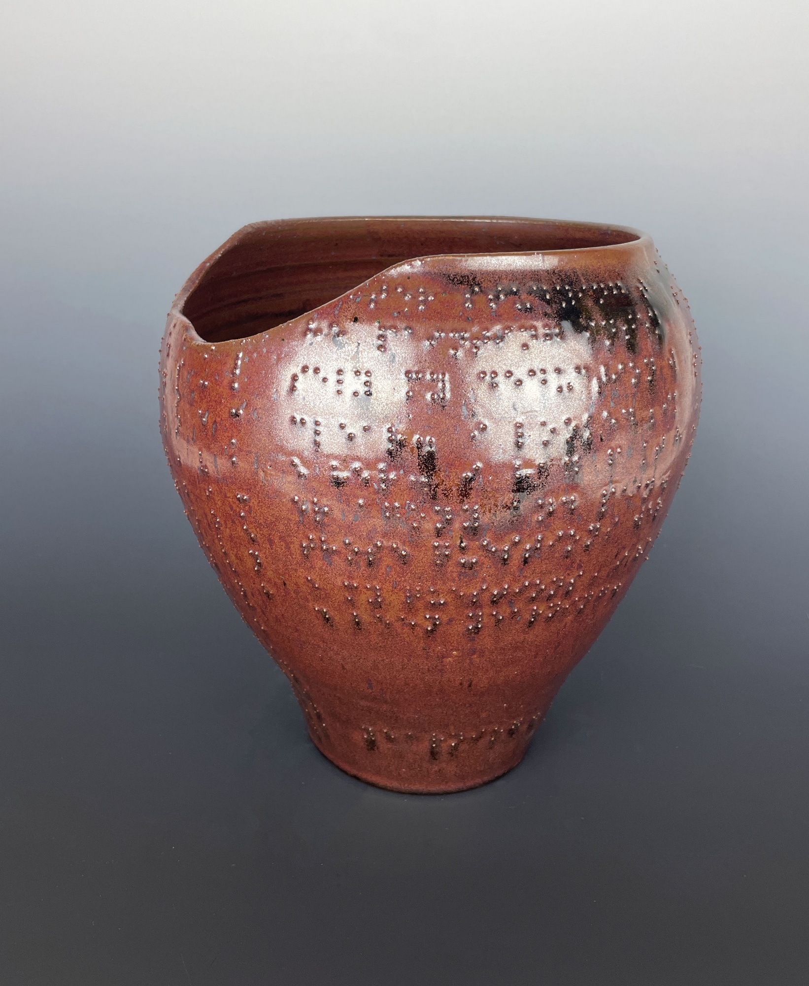Amy Sanders de Melo is a Colombian-American artist and educator living and working in Oklahoma. As a multidisciplinary artist with visual impairments, she strives to create ceramic work and installations that speak to the resiliency of the human spirit. She utilizes Braille on porcelain as a way of telling stories, encouraging meditation, and creating space for grieving and healing.